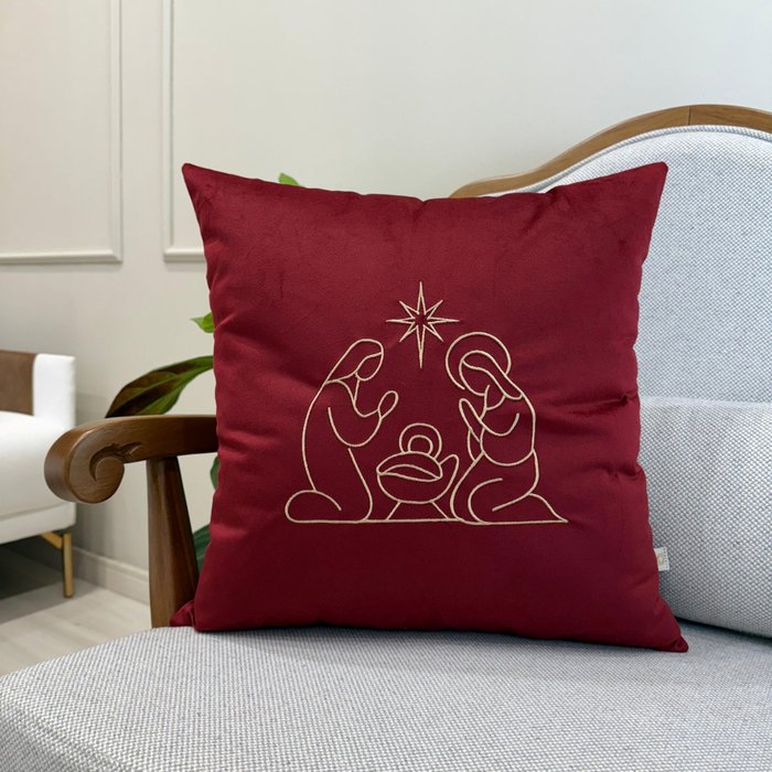 A Almofada Presépio de Veludo Marsala com Bordado Dourado da Lisieux Almofadas é uma peça criada para celebrar o verdadeiro significado do Natal. Feita em veludo nobre na tonalidade Marsala e com um bordado dourado refinado que representa o nascimento de Jesus, ela une espiritualidade, elegância e beleza em um só produto.