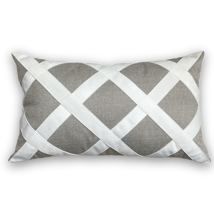 Almofada Royal Linho Cinza e Veludo Branco 30x50 — Luxo Clássico e Detalhe Artesanal