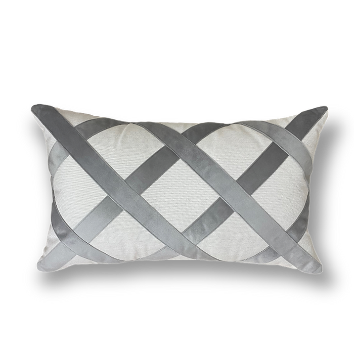 Almofada Royal Linho Cru e Veludo Cinza 30x50 — Luxo Artesanal e Sofisticação Contemporânea