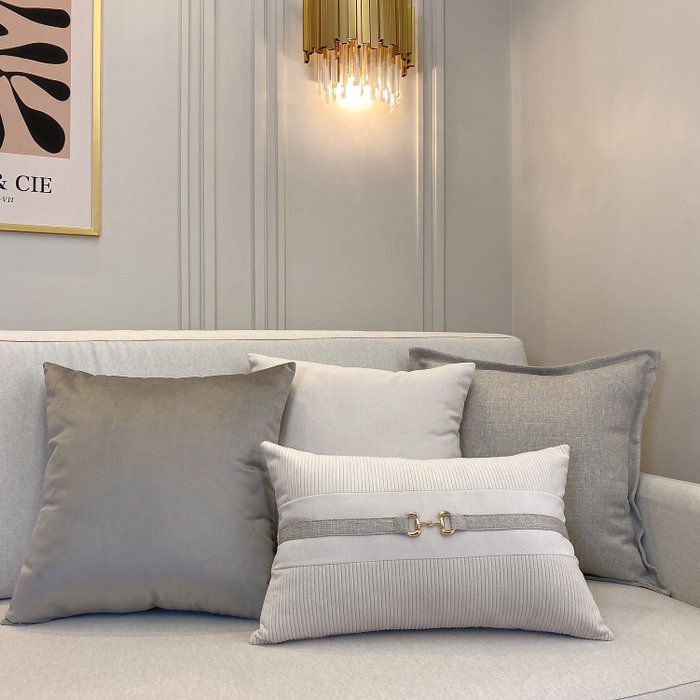 Ideal para sofás, poltronas e camas, o Kit Hereditas Cinza é uma opção versátil e elegante, capaz de transformar o ambiente com seu toque suave e sofisticado. O cinza é uma cor neutra que transmite serenidade e refinamento, tornando-se base perfeita para composições elegantes.