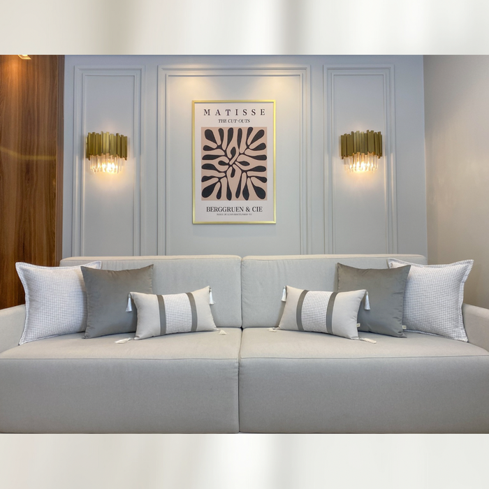Cada almofada é produzida com materiais nobres — como o linho, chenille e veludo — cuidadosamente selecionados para oferecer toque suave, resistência e beleza duradoura. A combinação de tons cinza, cru e branco cria uma atmosfera leve, elegante e versátil, perfeita para diferentes estilos de decoração.