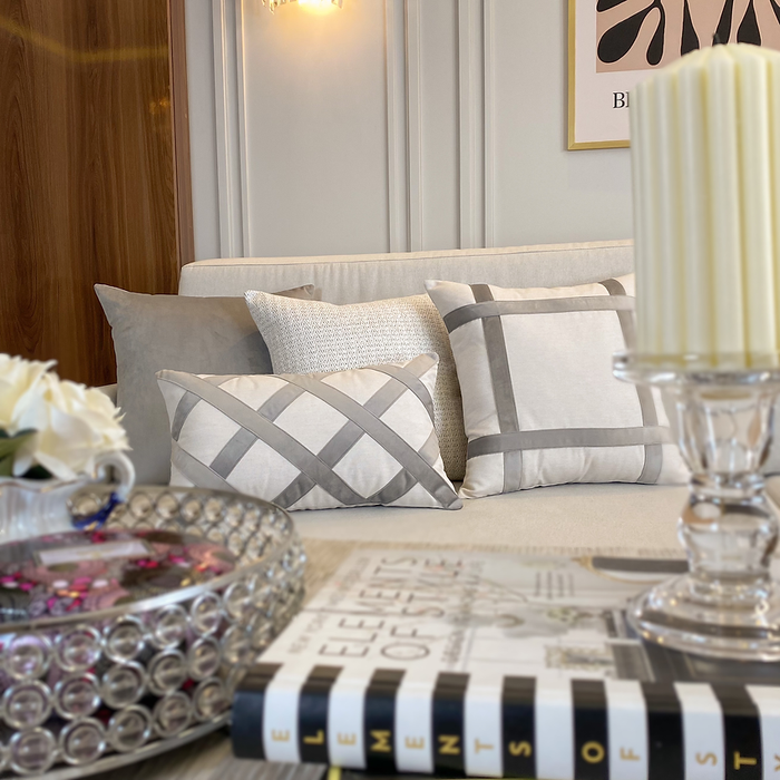 Kit Royal Linho Cru e Veludo Cinza 4 Almofadas: Elegância Artesanal e Sofisticação Atemporal