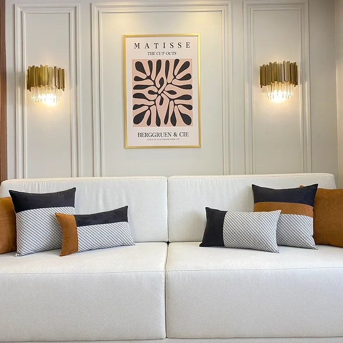 - Em salas de estar: adicione sofisticação e contraste a sofás neutros ou de couro.