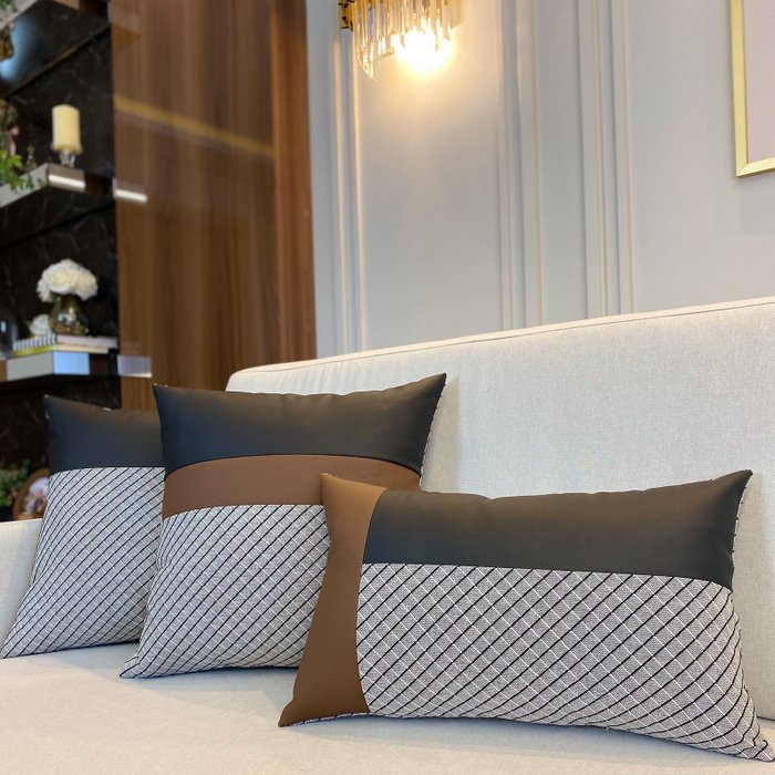 Definida por traços firmes e cores atemporais, a coleção apresenta uma harmonia entre o conforto e o luxo visual. O kit conta com seis almofadas, sendo quatro no formato quadrado e duas retangulares, cuidadosamente desenvolvidas em jacquard 100% algodão com fios nas cores preta e cru, formando uma padronagem geométrica sofisticada e visual marcante.