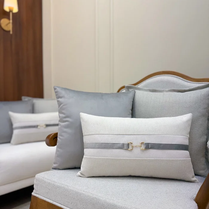 O grande destaque está no cinto com ferragem dourada de bridão, símbolo de força, requinte e tradição. O Kit Hereditas Cinza é ideal para quem busca almofadas decorativas de luxo com propósito, beleza e exclusividade.
